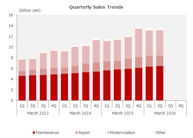 - Sales continue to grow steadily in both Maintenance & repair and Modernization.
