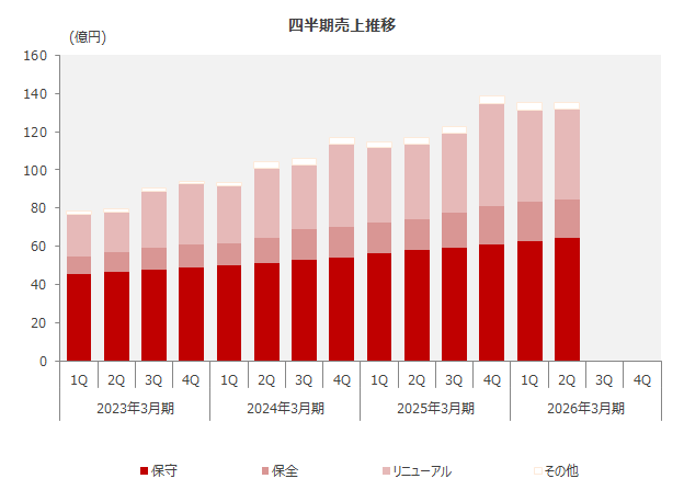 リニューアルは実施台数の増加に加え、単価上昇も着実に進み、前年同期比約2割の増収続く。