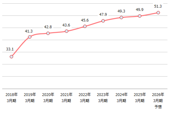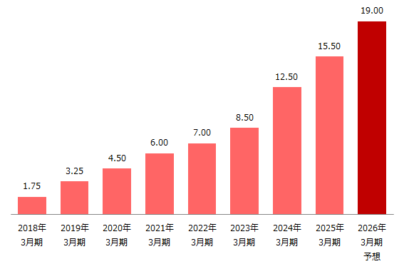 中期経営計画「VISION2027」におきましては、配当性向40%以上を基本方針とし、事業拡大(一株利益の成長)に伴い、一株配当も安定的な上昇を目指しています。